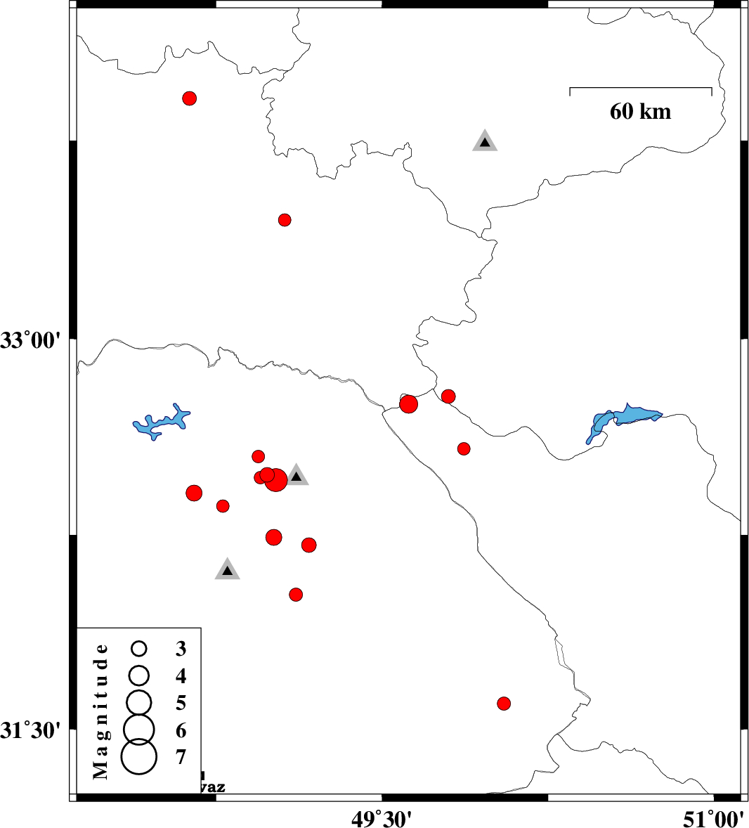 | 2011/10/29 | 17:27:32.6 | 20:57:32.6 | 33.91 | 48.63 | 18 | ML2.8 | Lorestan Province, 12 km West of Borujerd | ||