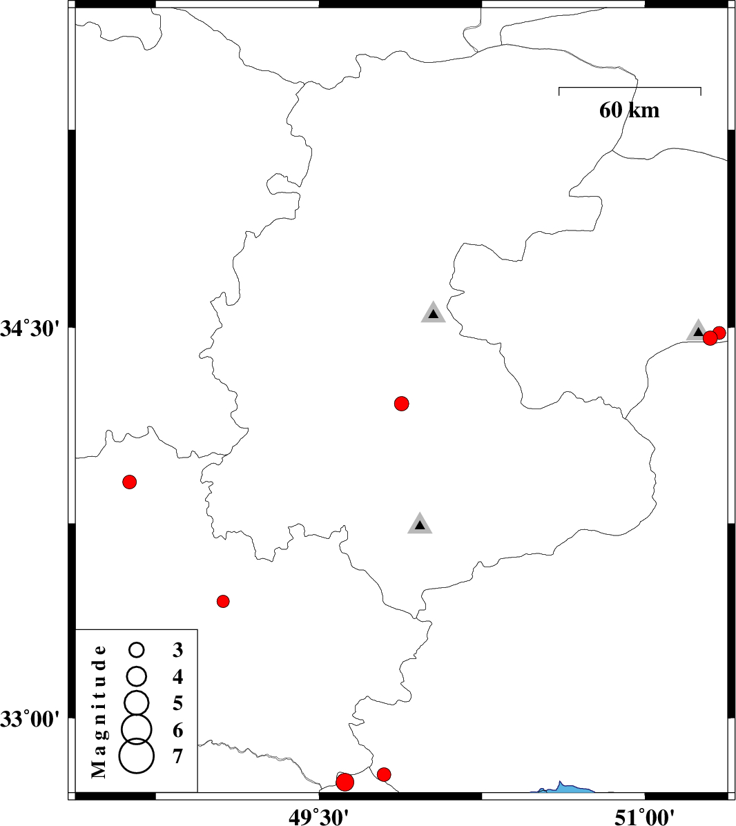 | 2011/11/09 | 06:48:05.5 | 10:18:05.5 | 34.21 | 49.88 | 7 | ML3 | Markazi Province, 22 km North-East of Arak | ||