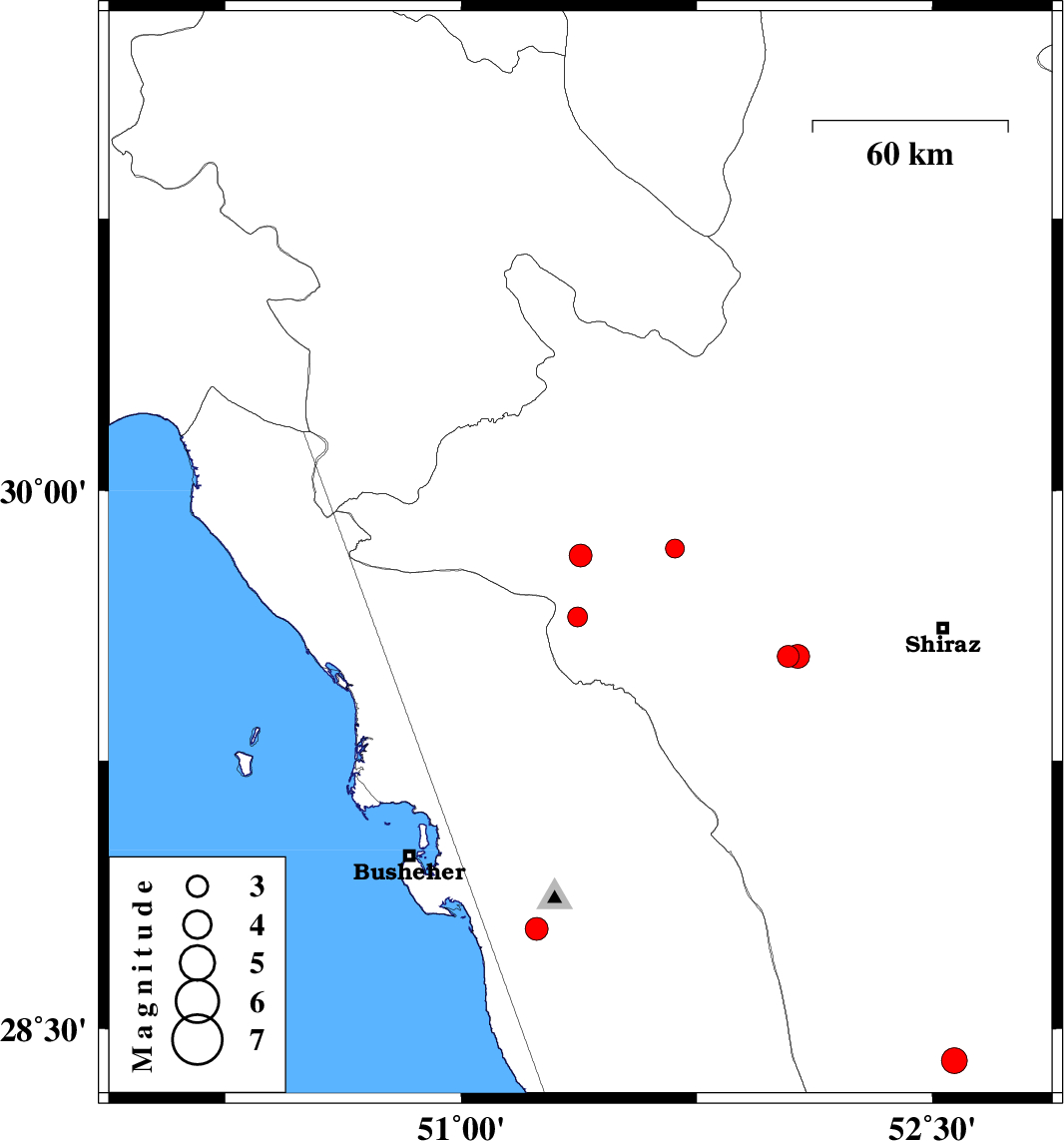 2011/11/07 15:18:41.2 18:48:41.2 29.5452.0418 ML3.1 Fars Province, 38 km East of Kazerun