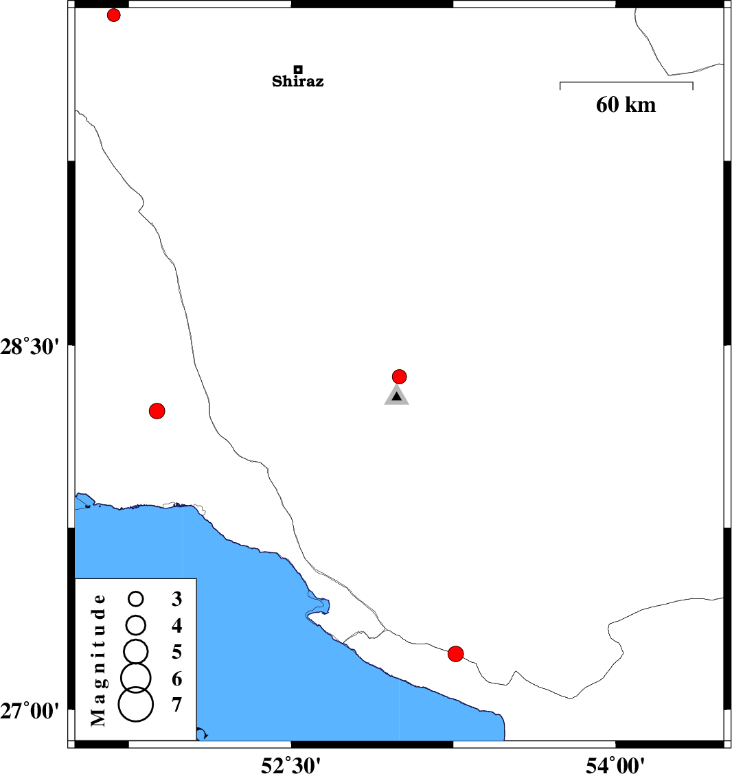 | 2011/11/15 | 06:52:31.1 | 10:22:31.1 | 28.23 | 51.88 | 14 | ML3.2 | Bushehr Province, 48 km North-West of Bandar-e kangan |