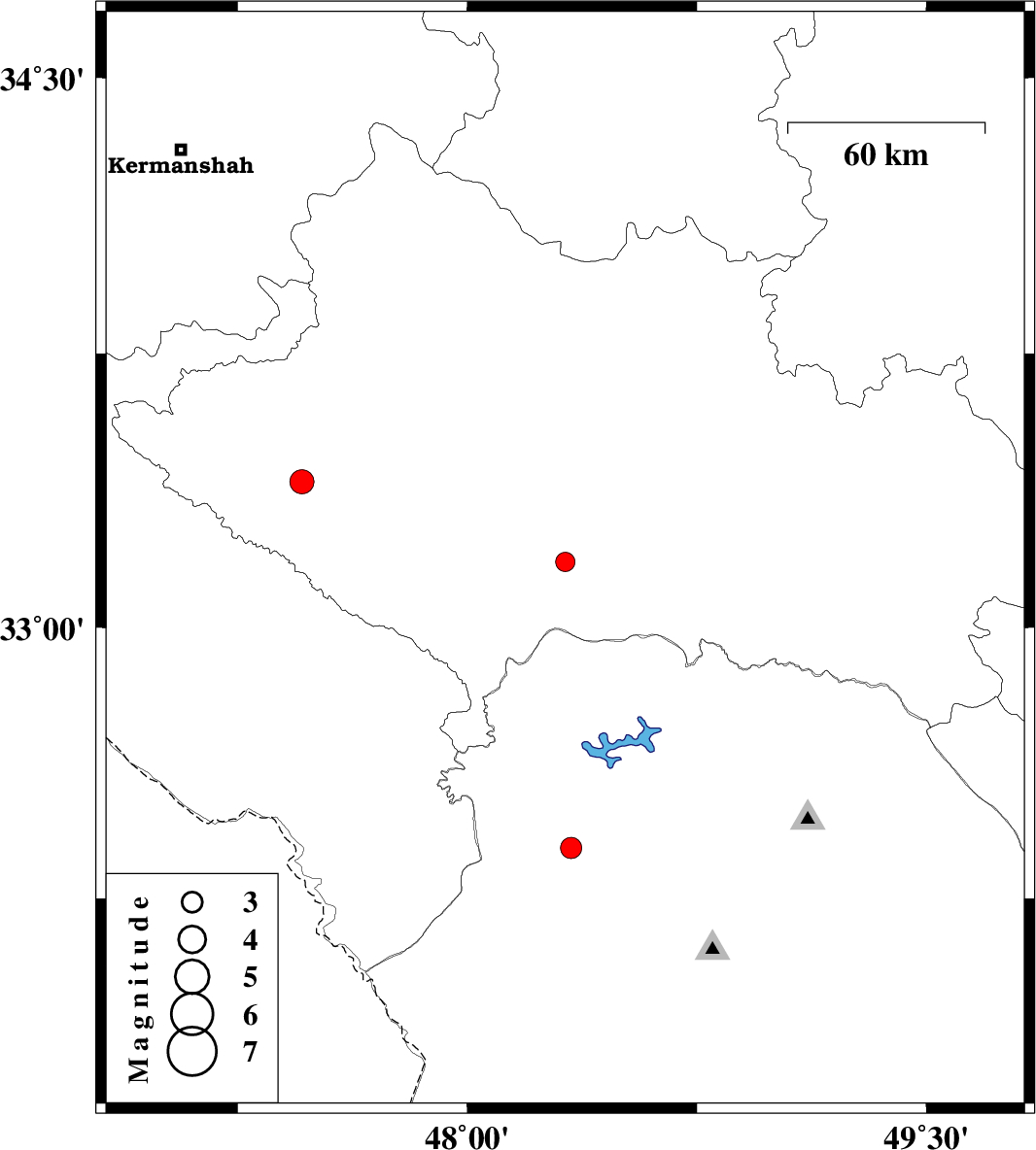| 2011/12/14 | 00:07:58.6 | 03:37:58.6 | 33.4 | 47.46 | 17 | ML3.5 | Lorestan Province, 21 km South-West of Kuhdasht |