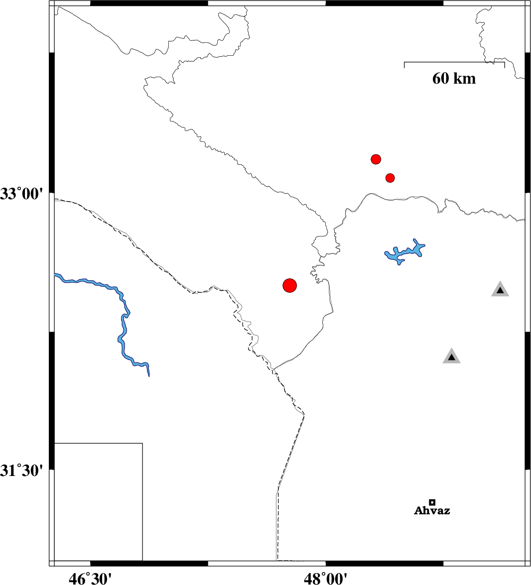 | 2011/12/25 | 05:35:34.6 | 09:05:34.6 | 32.5 | 47.77 | 30 | ML4 | Ilam Province, 55 km West of Andimeshk | ||