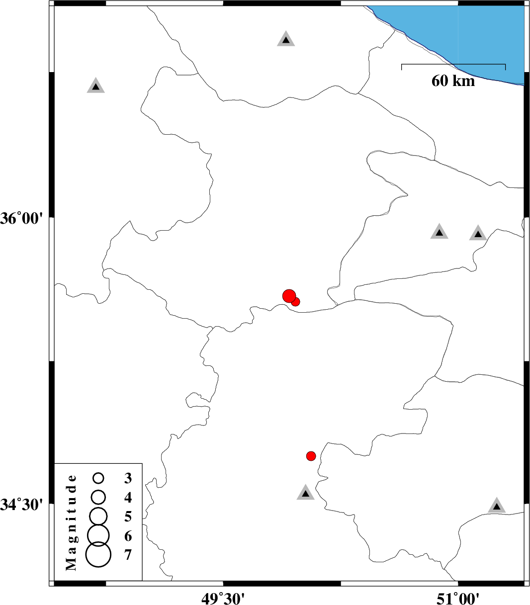| 2011/12/28 | 11:58:35.8 | 15:28:35.8 | 35.59 | 49.92 | 15 | ML3.8 | Ghazvin Province, 24 km South-West of Buinzara | ||