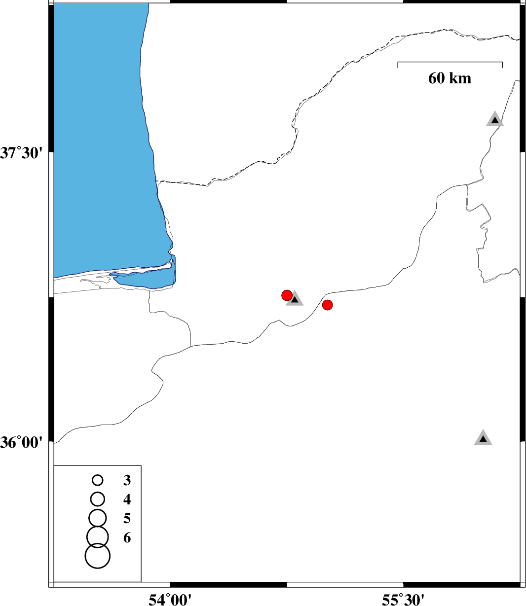 | 2011/12/29 | 11:51:04.6 | 15:21:04.6 | 36.76 | 54.75 | 14 | ML3.1 | Golestan Province, 20 km South-West of Ali Abad | ||