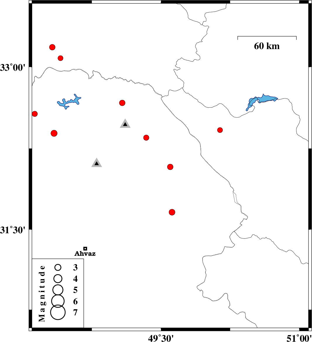 | 2011/12/30 | 07:51:54.0 | 11:21:54.0 | 32.67 | 49.08 | 15 | ML2.8 | Khoozestan Province, 31 km North of Lali | ||