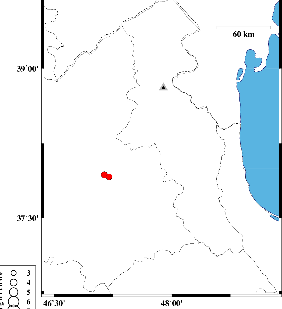 | 2012/01/03 | 00:56:30.8 | 04:26:30.8 | 38.24 | 47.81 | 14 | ML3.6 | Ardebil Province, 22 km South-East of Meshgin Shahr |