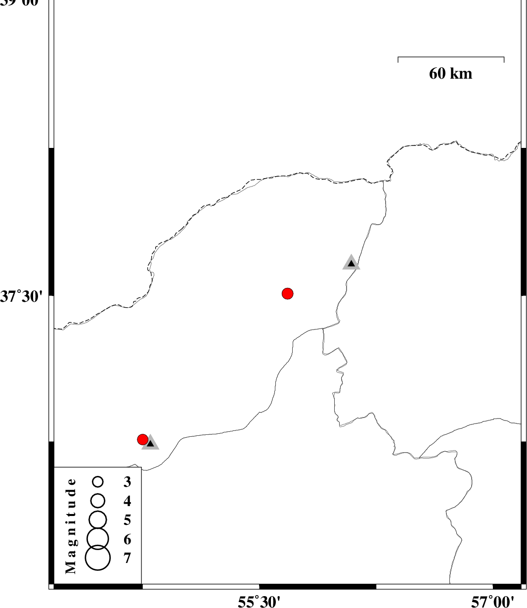 | 2012/01/03 | 16:47:33.3 | 20:17:33.3 | 37.51 | 55.68 | 15 | ML3.3 | Golestan Province, 22 km North-East of Kalaleh | ||