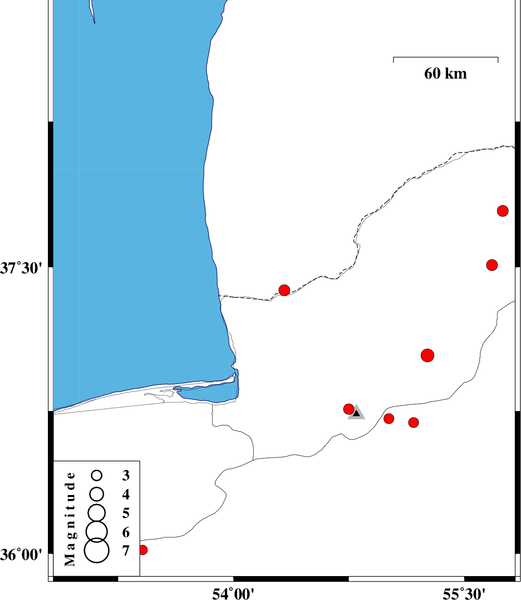 | 2012/01/03 | 16:47:33.3 | 20:17:33.3 | 37.51 | 55.68 | 15 | ML3.3 | Golestan Province, 22 km North-East of Kalaleh | ||