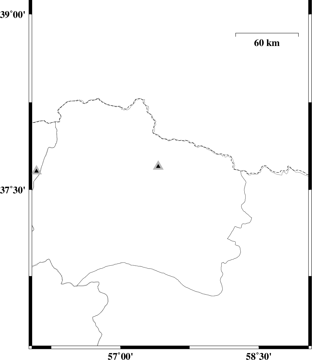 | 2012/01/08 | 08:54:42.3 | 12:24:42.3 | 37.64 | 57.54 | 14 | ML2.5 | Khorasan(north) Province, 26 km North-East of Bojnurd | ||