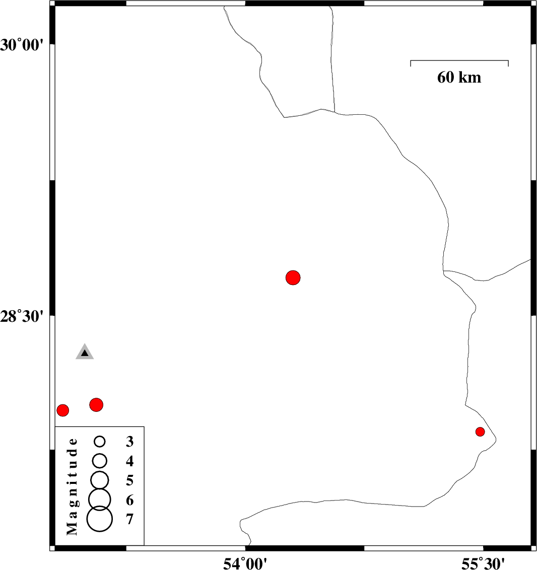 | 2012/01/11 | 06:06:27.3 | 09:36:27.3 | 28.71 | 54.3 | 23 | ML4.1 | Fars Province, 23 km West of Darab | ||
