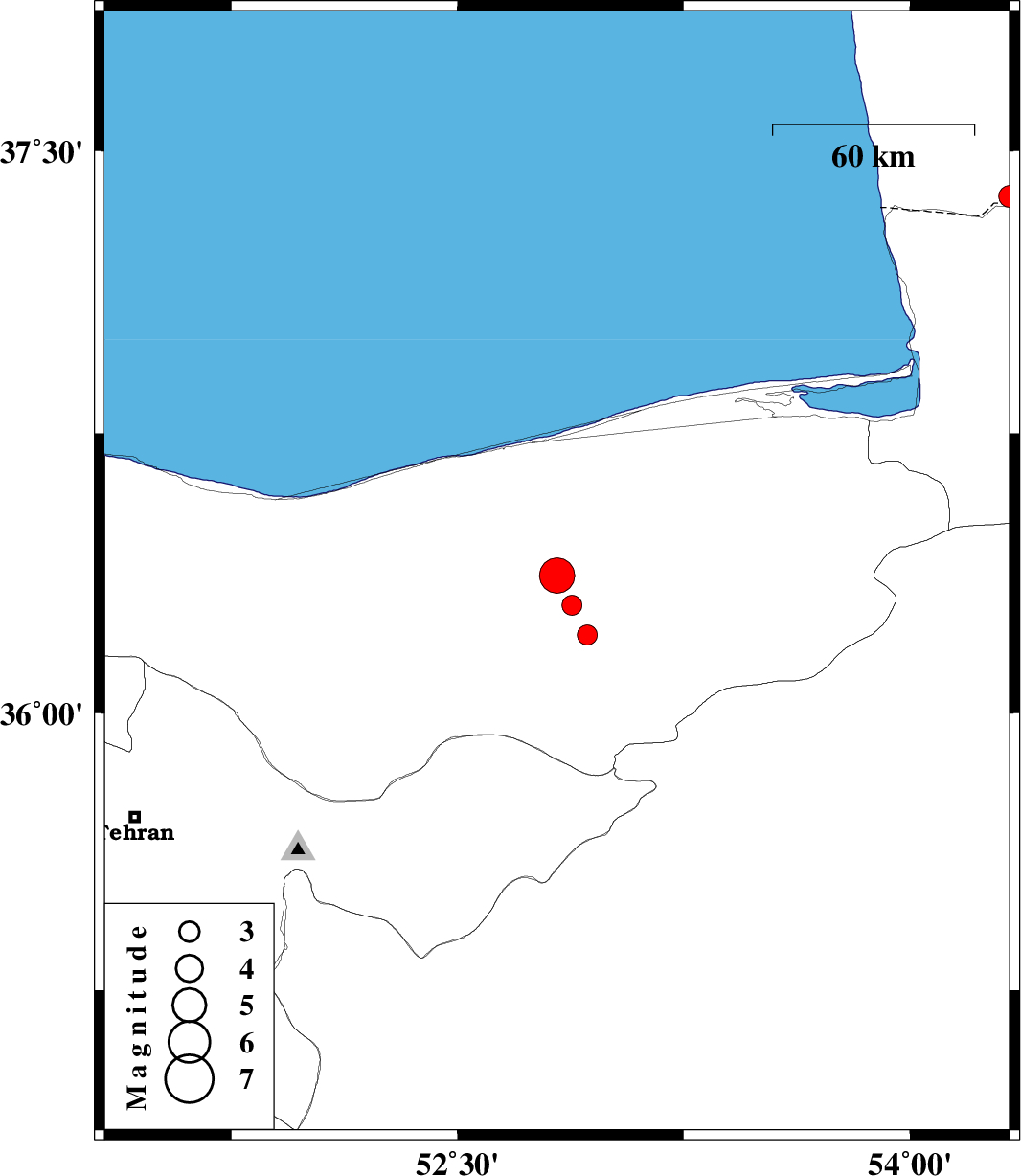 2012/01/11 19:03:20.3 22:33:20.3 36.2152.9318 ML2.9 Mazandaran Province, 15 km West of Pol-E-Sefid