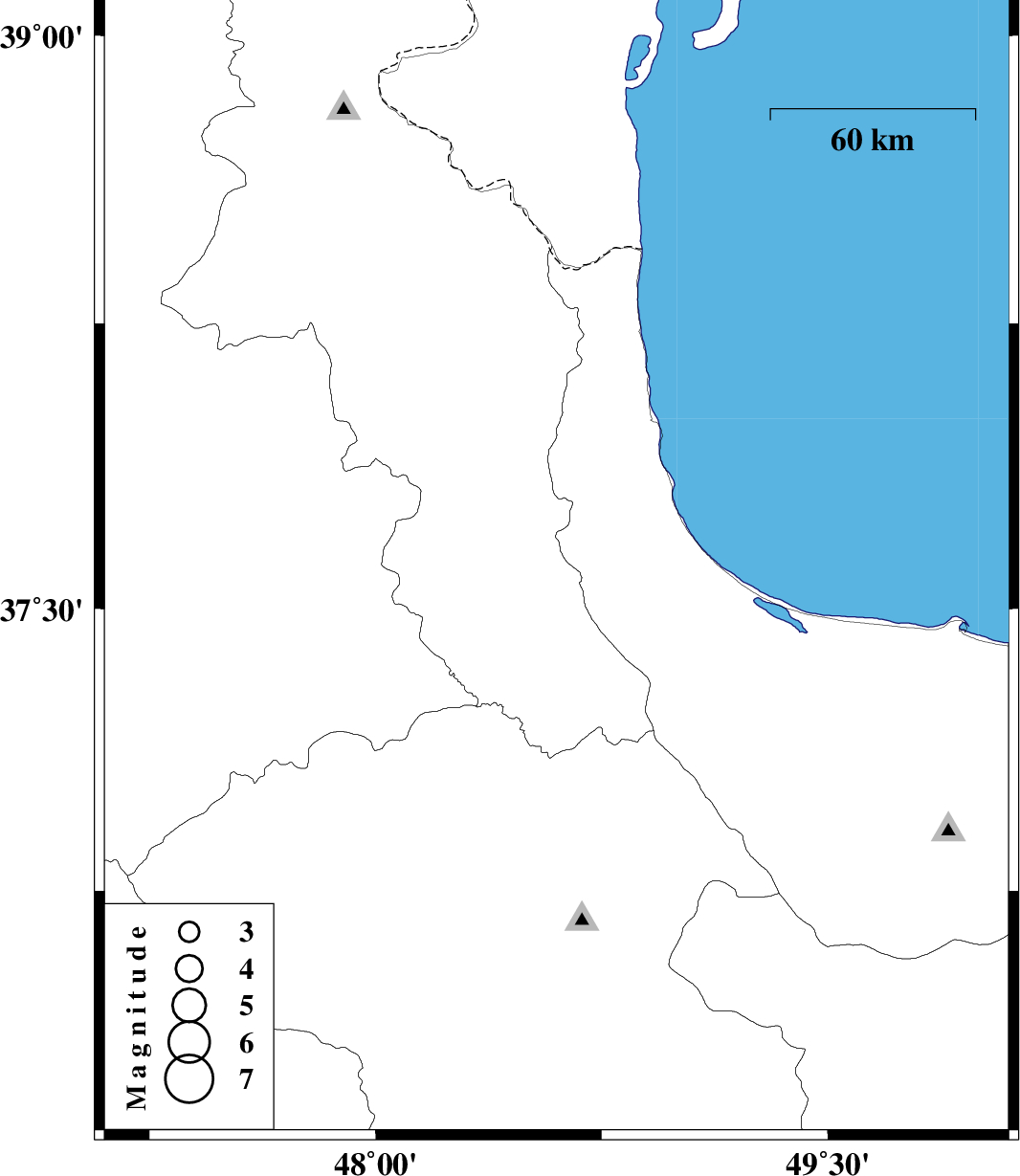 | 2012/01/16 | 15:06:34.2 | 18:36:34.2 | 37.61 | 48.6 | 14 | ML3.9 | Ardebil Province, 6 km Khalkhal |
