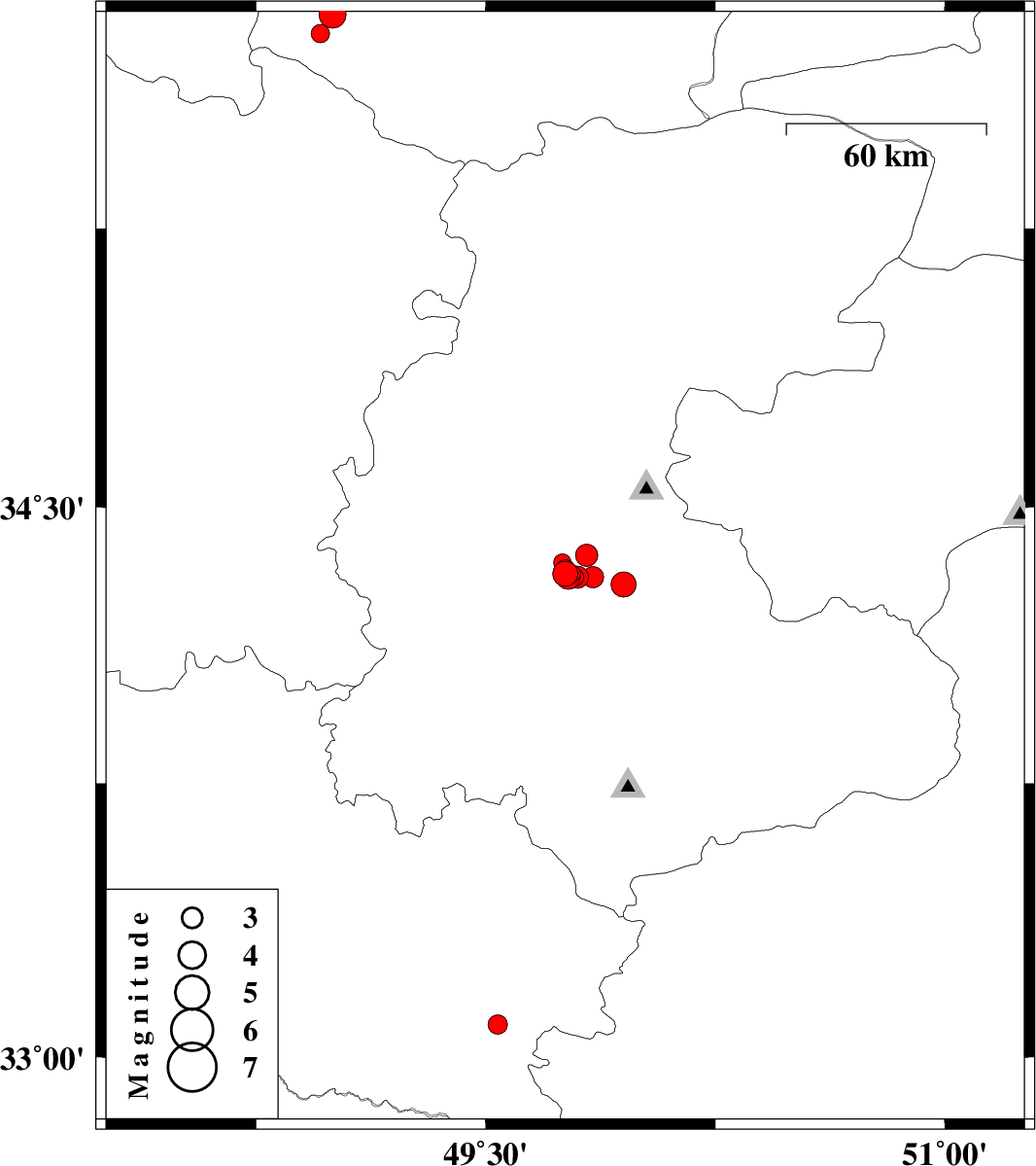 2012/01/14 09:45:11.9 13:15:11.9 33.0949.5415 ML2.8 Lorestan Province, 41 km South of Azna