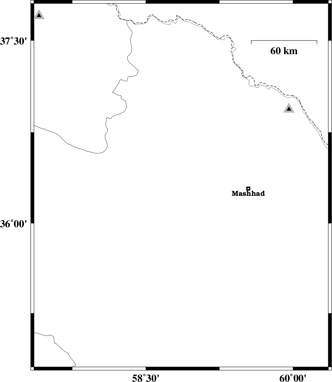 | 2012/01/19 | 12:35:51.2 | 16:05:51.2 | 36.3 | 58.86 | 16 | ML5.4 | Khorasan(center) Province, 12 km Neyshabur | download | |
