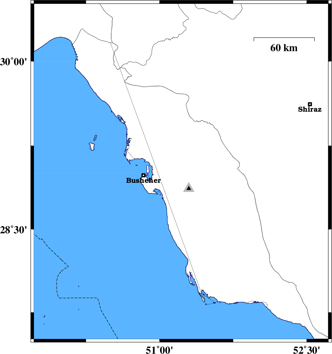 | 2012/01/25 | 11:14:06.2 | 14:44:06.2 | 28.96 | 51.08 | 17 | ML3.3 | Bushehr Province, 20 km West of Ahram | ||