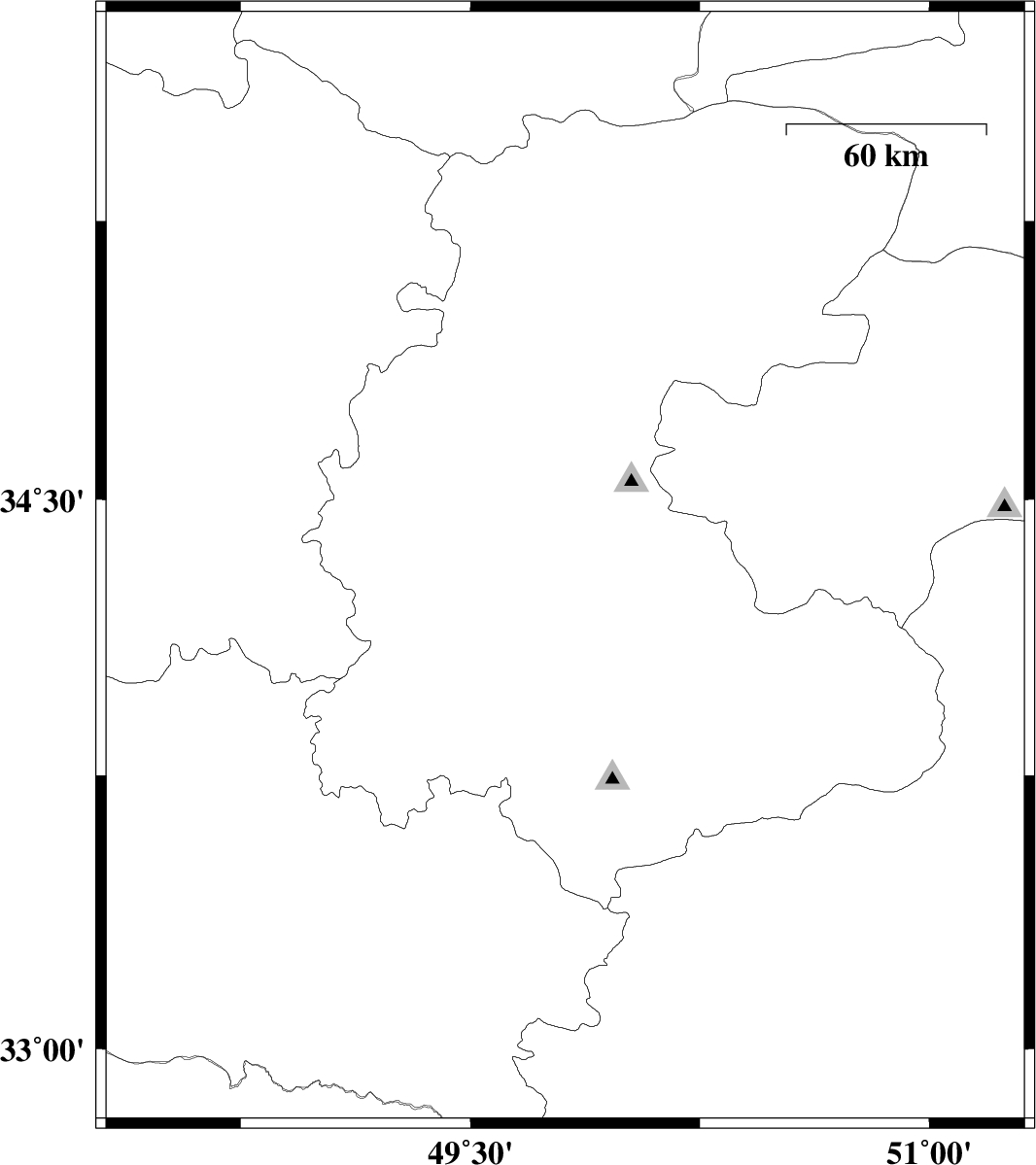 | 2012/01/25 | 19:38:22.1 | 23:08:22.1 | 34.33 | 49.79 | 14 | ML3.1 | Markazi Province, 28 km North-East of Arak | ||