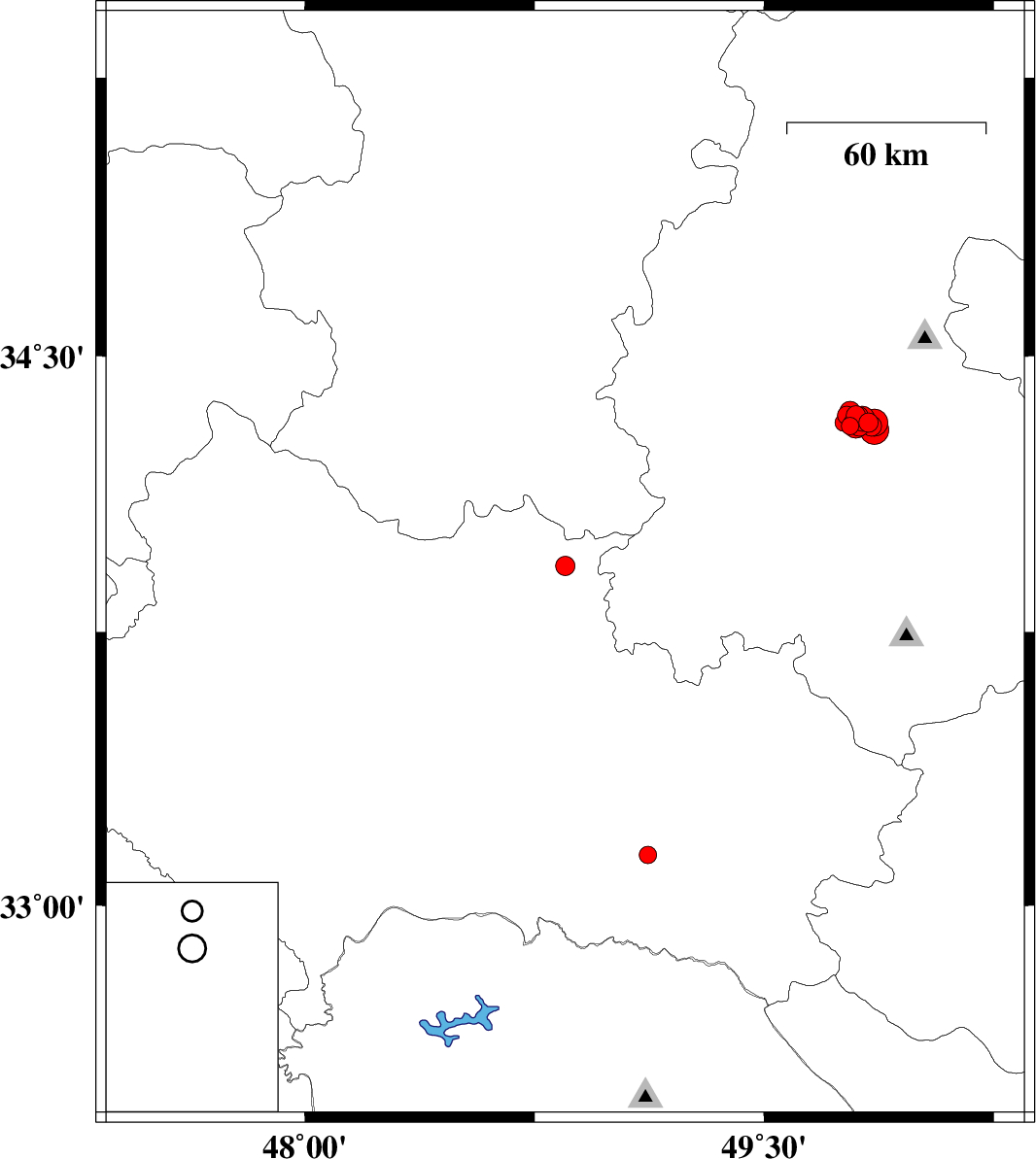 | 2012/02/01 | 19:27:04.8 | 22:57:04.8 | 34.32 | 49.84 | 13 | ML2.8 | Markazi Province, 28 km South-West of Ashtiyan | ||