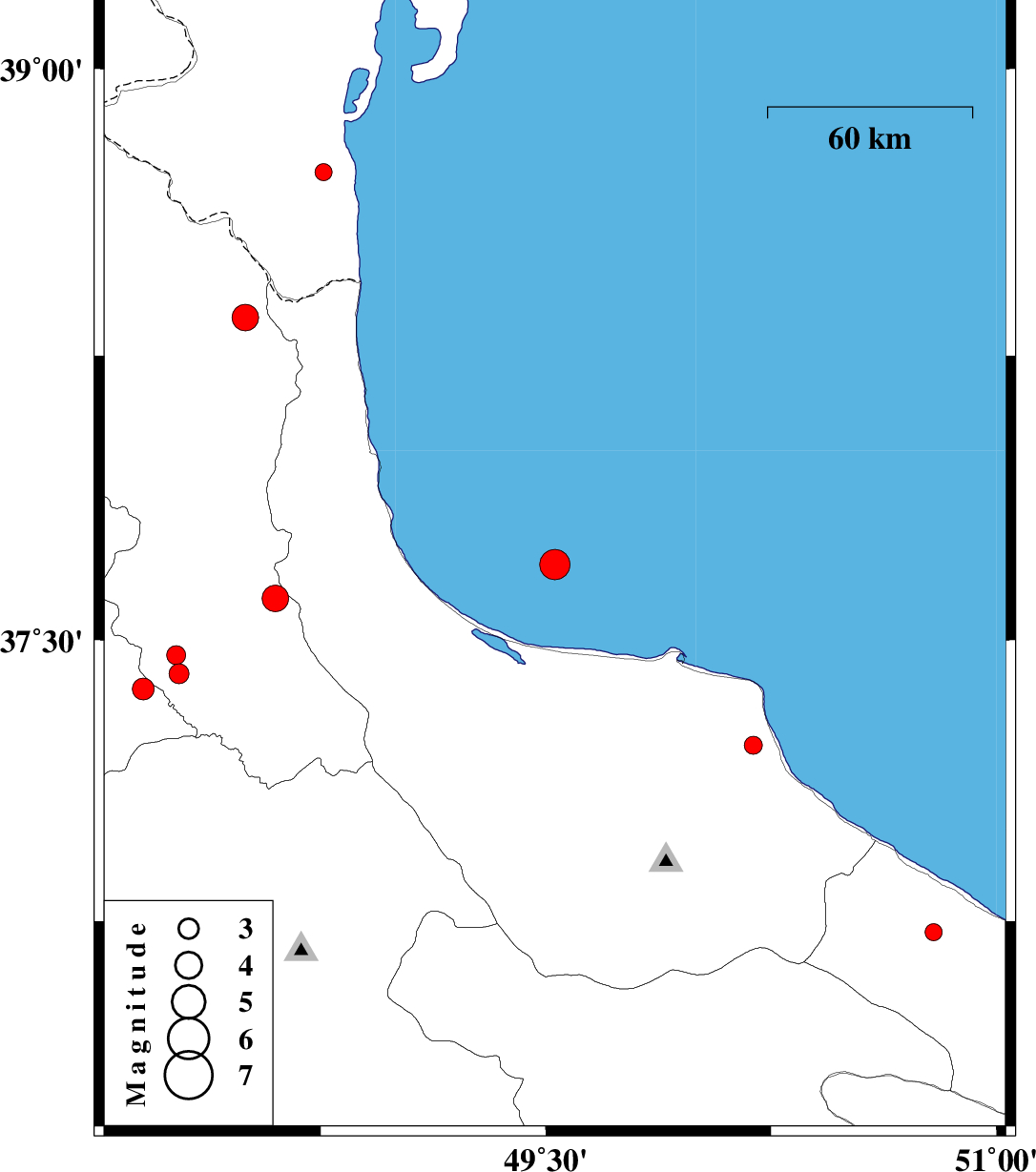 | 2012/02/04 | 20:04:14.0 | 23:34:14.0 | 37.7 | 49.53 | 40 | ML4.5 | Caspian Sea, 26 km North of Bandar-e anzali | ||