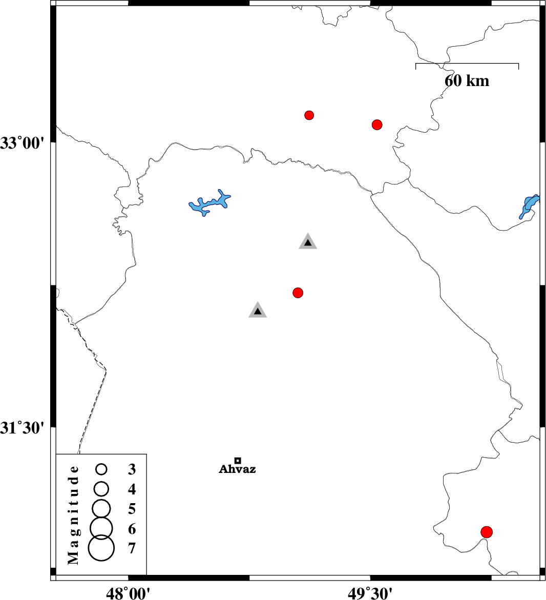 | 2012/01/14 | 09:45:11.9 | 13:15:11.9 | 33.09 | 49.54 | 15 | ML2.8 | Lorestan Province, 41 km South of Azna |