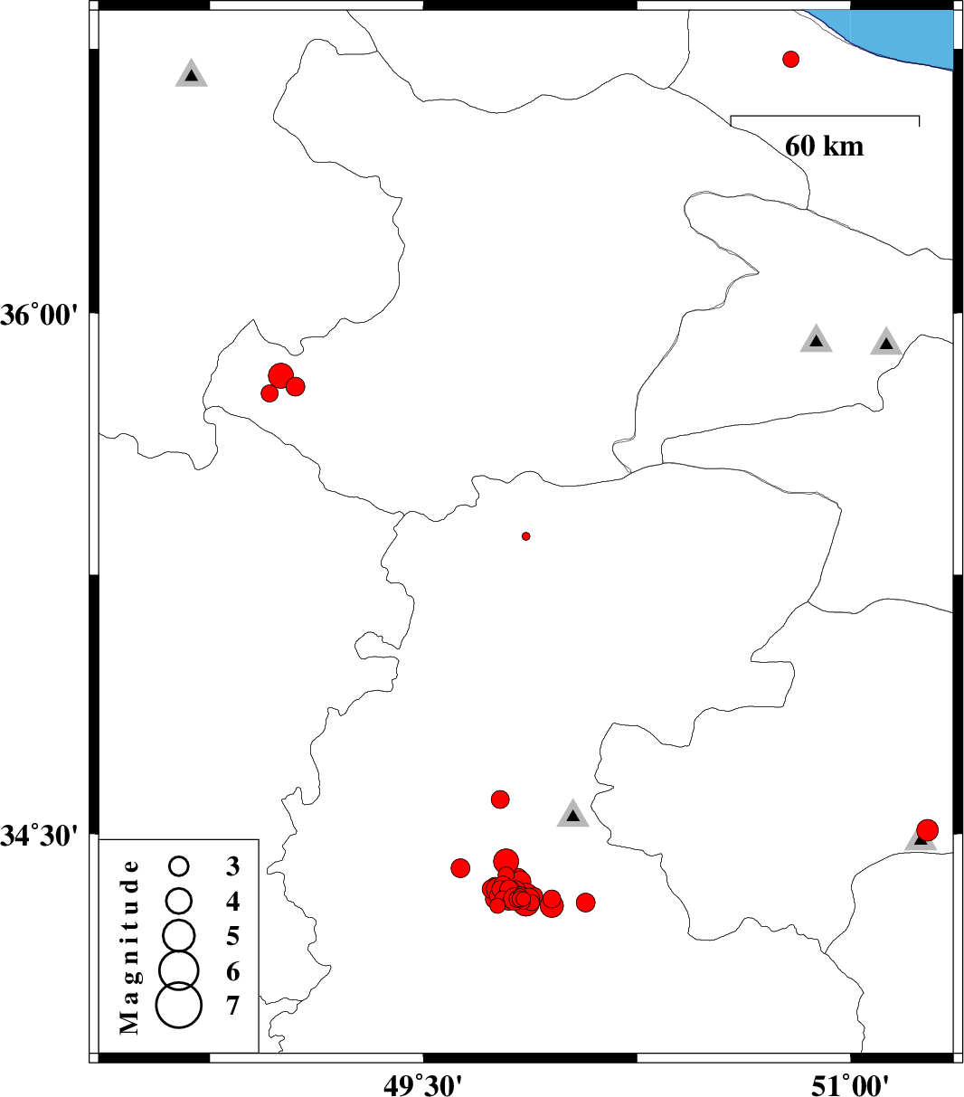 | 2012/01/20 | 03:42:15.2 | 07:12:15.2 | 34.34 | 49.76 | 14 | ML3 | Markazi Province, 29 km North of Arak | ||