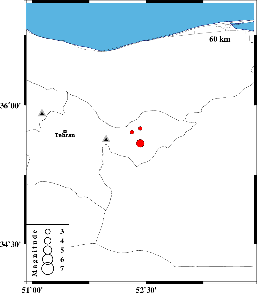 | 2012/02/10 | 11:42:58.4 | 15:12:58.4 | 35.71 | 52.31 | 18 | ML2.3 | Tehran Province, 21 km East of Damavand | ||