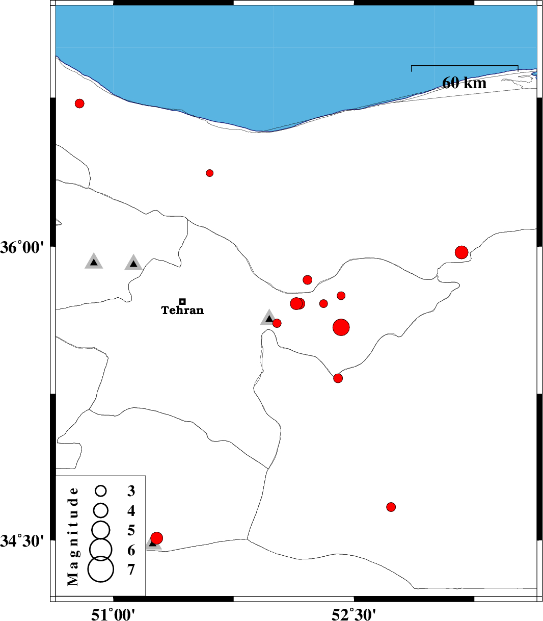 | 2012/02/17 | 07:08:17.4 | 10:38:17.4 | 36.37 | 51.6 | 14 | ML2 | Mazandaran Province, 32 km South of Nowshahr | ||