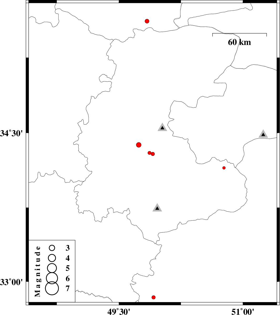 | 2012/02/12 | 14:01:29.2 | 17:31:29.2 | 34.38 | 49.74 | 18 | ML2.7 | Markazi Province, 32 km North of Arak |