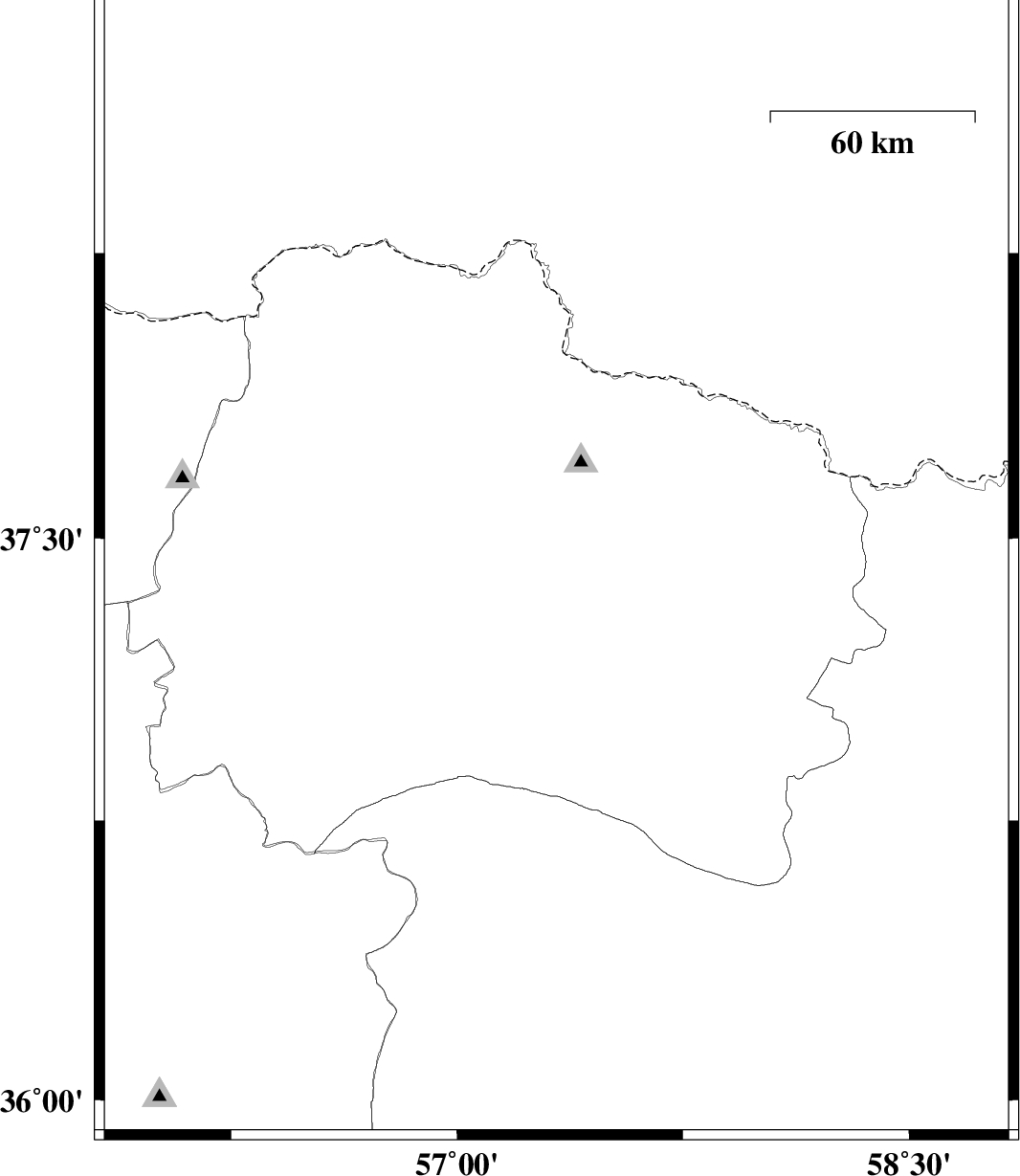 | 2012/02/18 | 07:20:26.8 | 10:50:26.8 | 37.42 | 57.33 | 14 | ML2.2 | Khorasan(north) Province, 6 km Bojnurd |