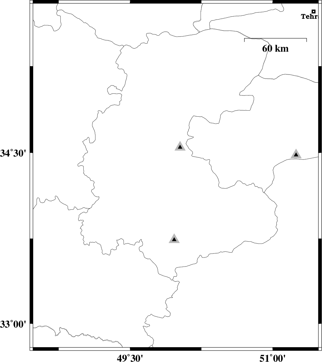 | 2012/01/31 | 04:26:53.2 | 07:56:53.2 | 34.34 | 49.8 | 25 | ML2.8 | Markazi Province, 30 km North-East of Arak | ||