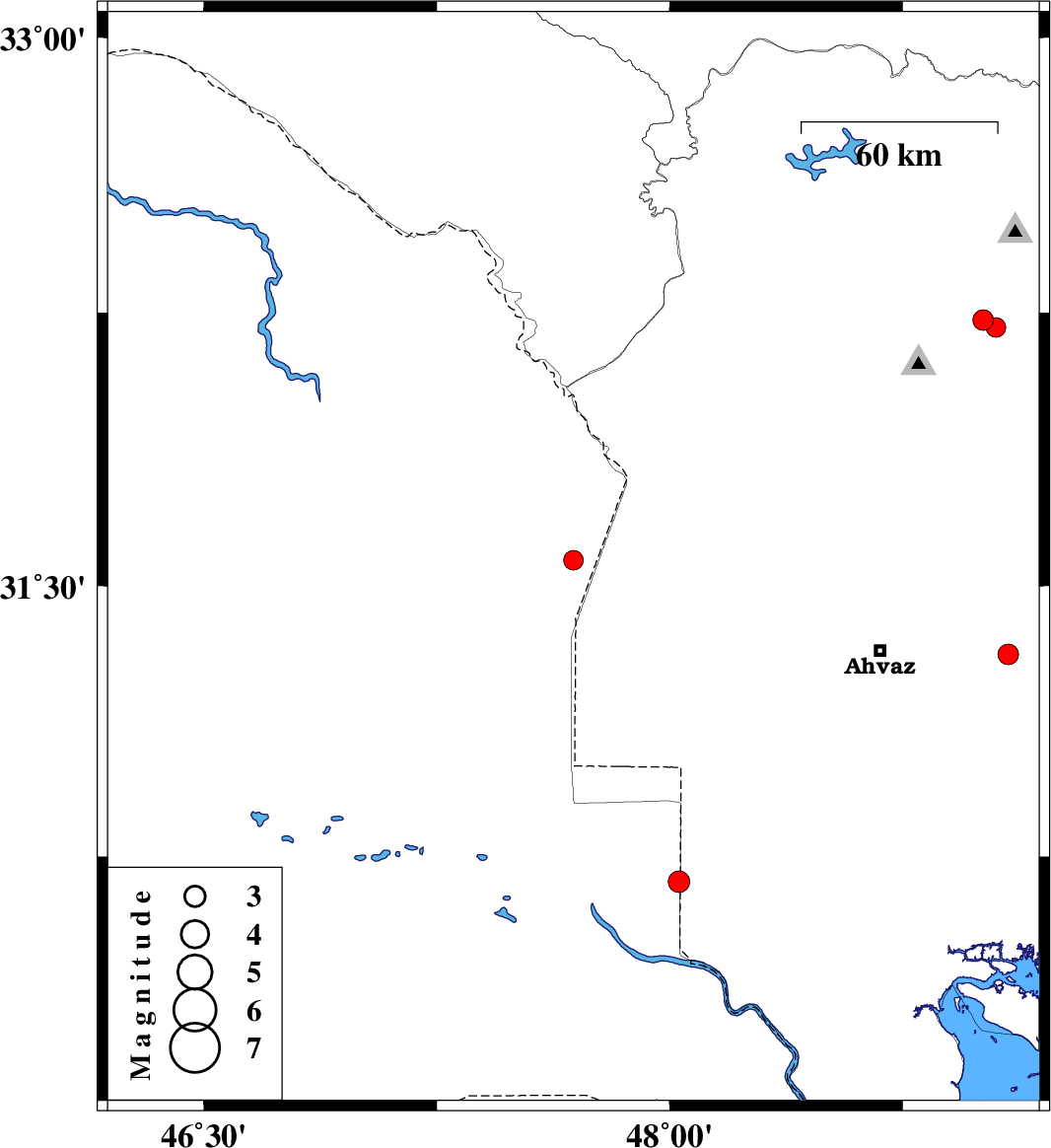 | 2012/02/21 | 19:44:09.0 | 23:14:09.0 | 31.31 | 49.09 | 23 | ML2.9 | Khoozestan Province, 40 km East of Ahvaz | ||