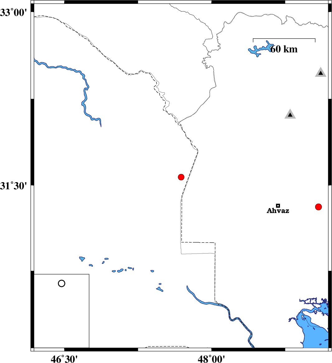 | 2012/02/21 | 19:44:09.0 | 23:14:09.0 | 31.31 | 49.09 | 23 | ML2.9 | Khoozestan Province, 40 km East of Ahvaz |