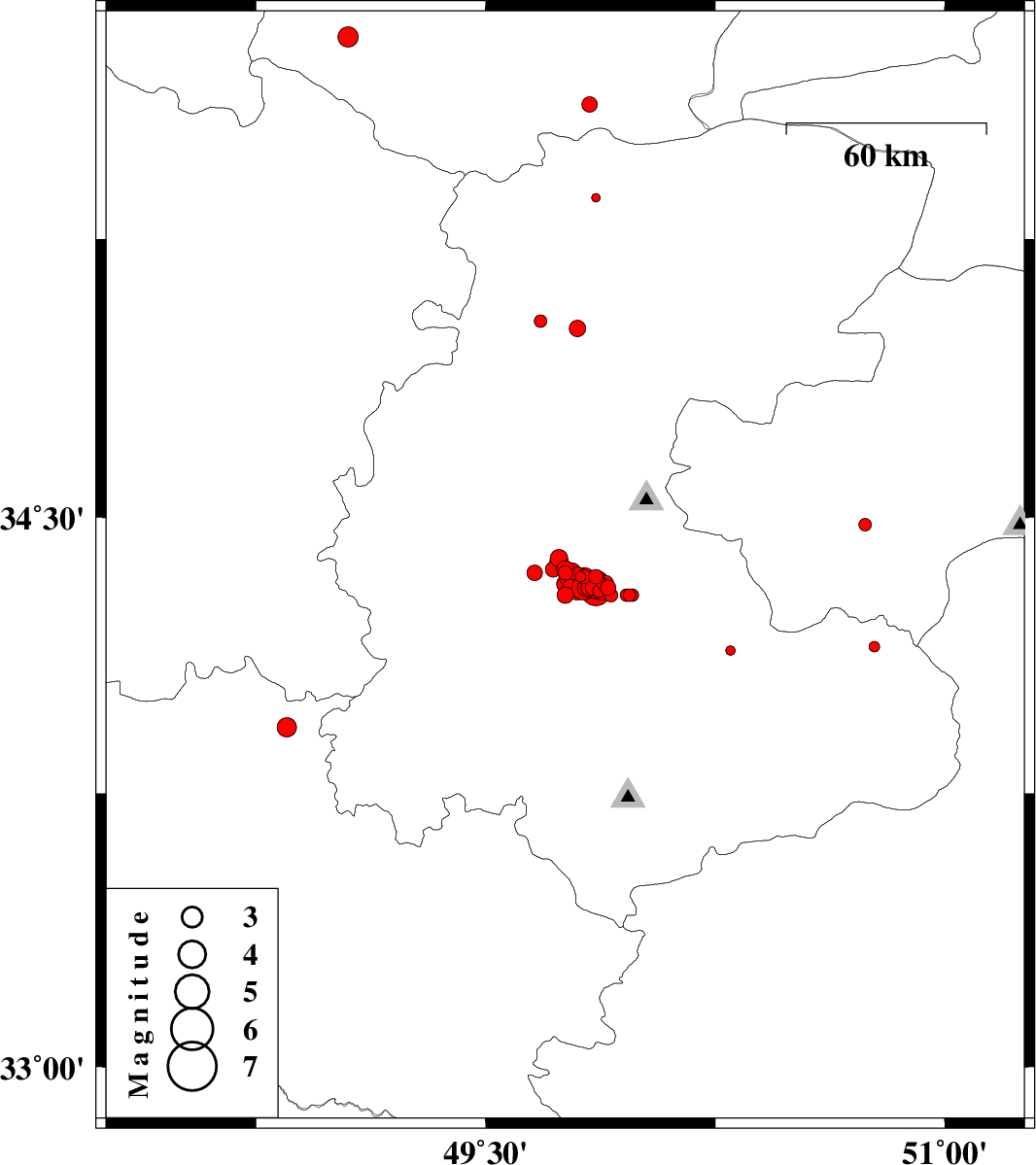 | 2012/02/20 | 17:40:07.4 | 21:10:07.4 | 34.29 | 49.98 | 6 | ML1.9 | Markazi Province, 27 km South of Ashtiyan | ||