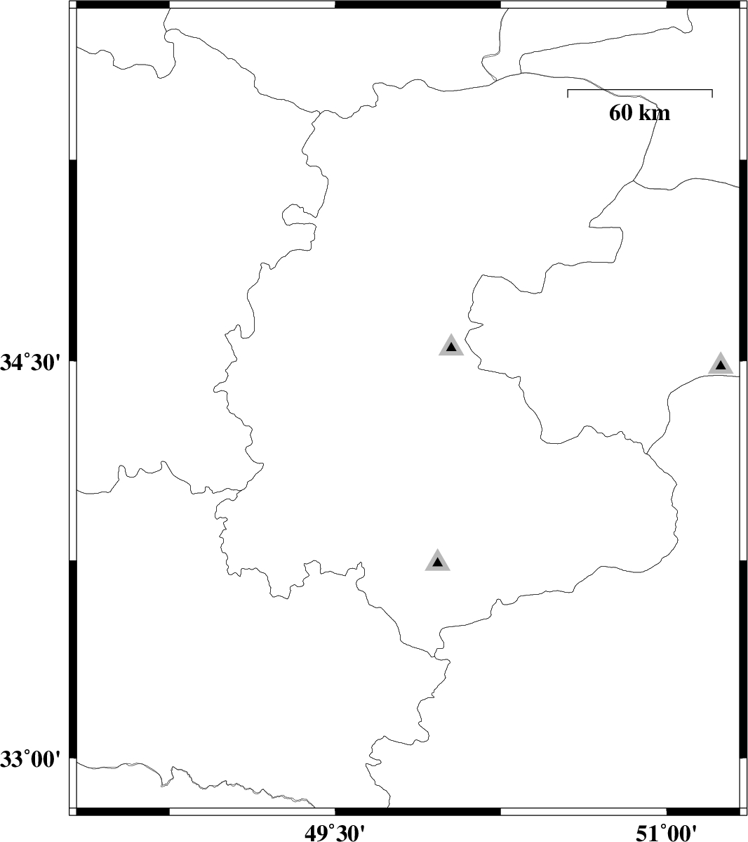 | 2012/02/26 | 03:09:08.0 | 06:39:08.0 | 34.31 | 49.83 | 6 | ML1.7 | Markazi Province, 29 km North-East of Arak | ||