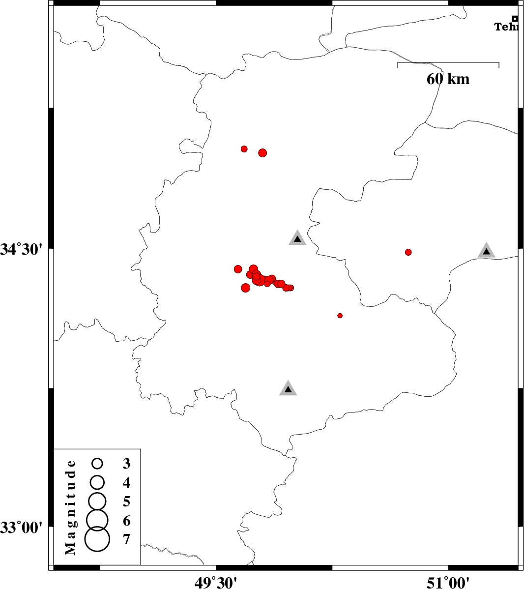 | 2012/02/20 | 17:40:07.4 | 21:10:07.4 | 34.29 | 49.98 | 6 | ML1.9 | Markazi Province, 27 km South of Ashtiyan | ||