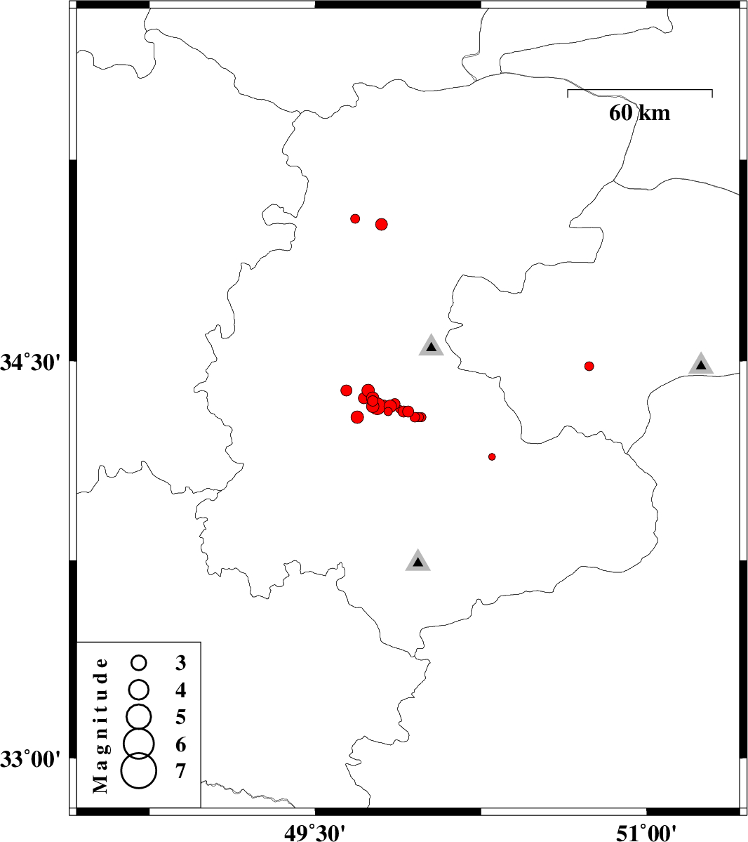 | 2012/02/20 | 17:40:07.4 | 21:10:07.4 | 34.29 | 49.98 | 6 | ML1.9 | Markazi Province, 27 km South of Ashtiyan | ||