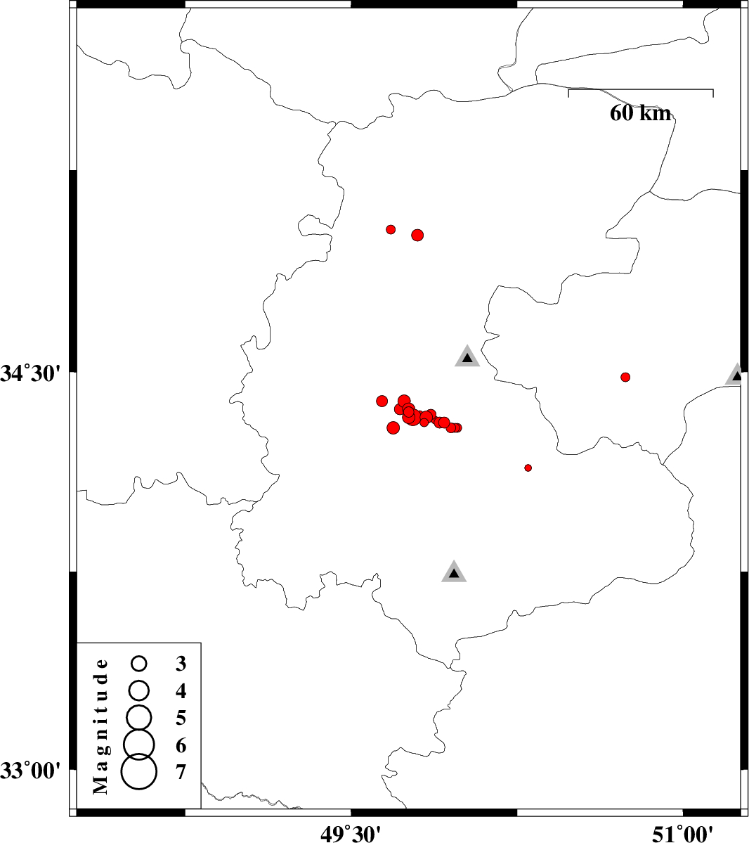 | 2012/02/20 | 17:40:07.4 | 21:10:07.4 | 34.29 | 49.98 | 6 | ML1.9 | Markazi Province, 27 km South of Ashtiyan | ||