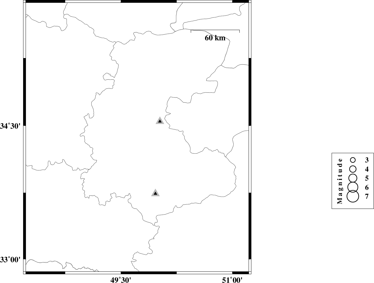 | 2012/02/26 | 01:20:15.2 | 04:50:15.2 | 34.39 | 49.64 | 35 | ML2.3 | Markazi Province, 34 km North of Arak | ||