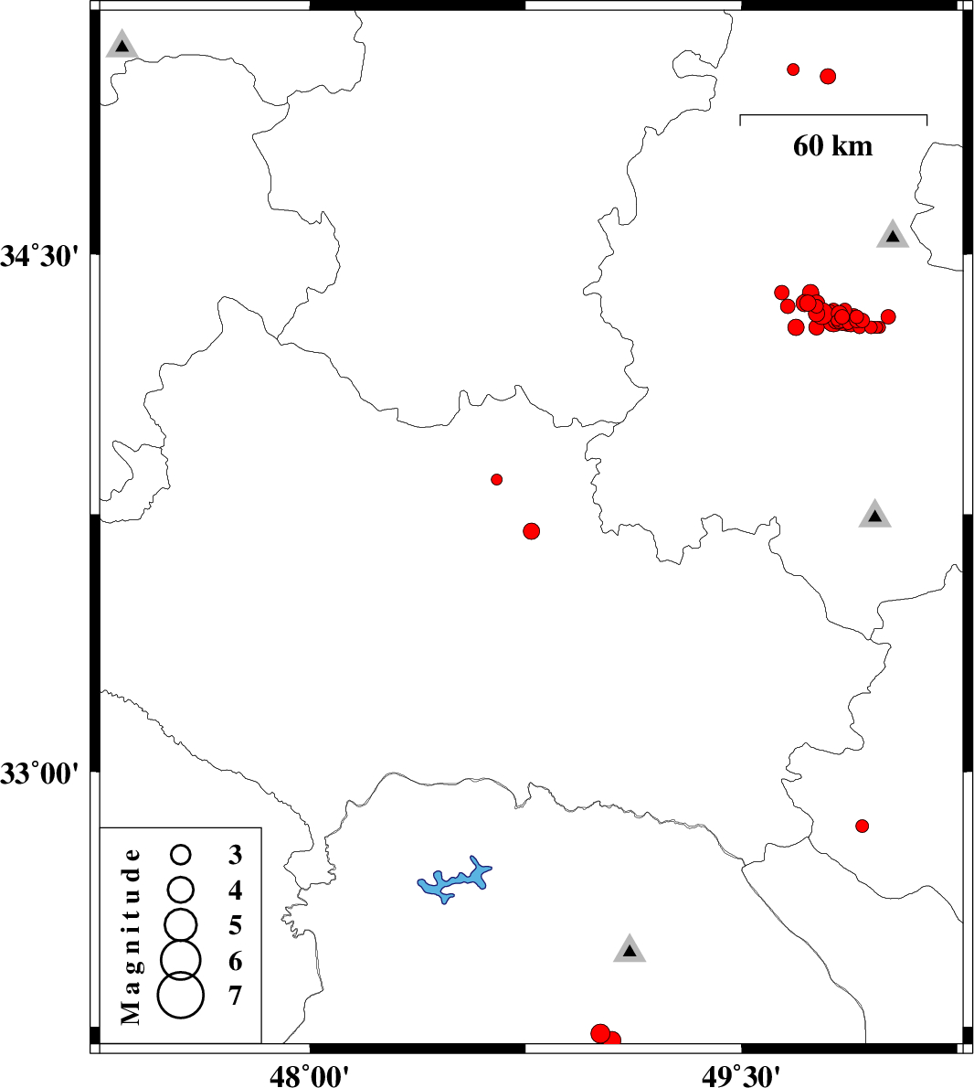 | 2012/02/20 | 17:40:07.4 | 21:10:07.4 | 34.29 | 49.98 | 6 | ML1.9 | Markazi Province, 27 km South of Ashtiyan | ||