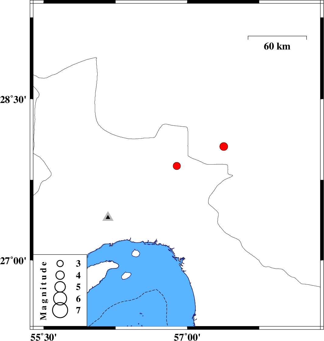 | 2012/03/05 | 19:30:15.2 | 23:00:15.2 | 27.88 | 56.89 | 14 | ML3.5 | Hormozgan Province, 61 km North-West of Dehbarez | ||