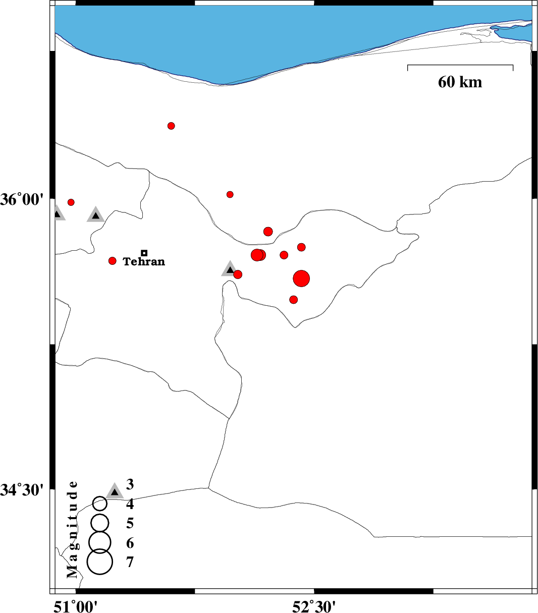 | 2012/02/21 | 01:10:29.5 | 04:40:29.5 | 35.98 | 50.97 | 16 | ML1.8 | Tehran Province, 20 km North of Karaj | ||
