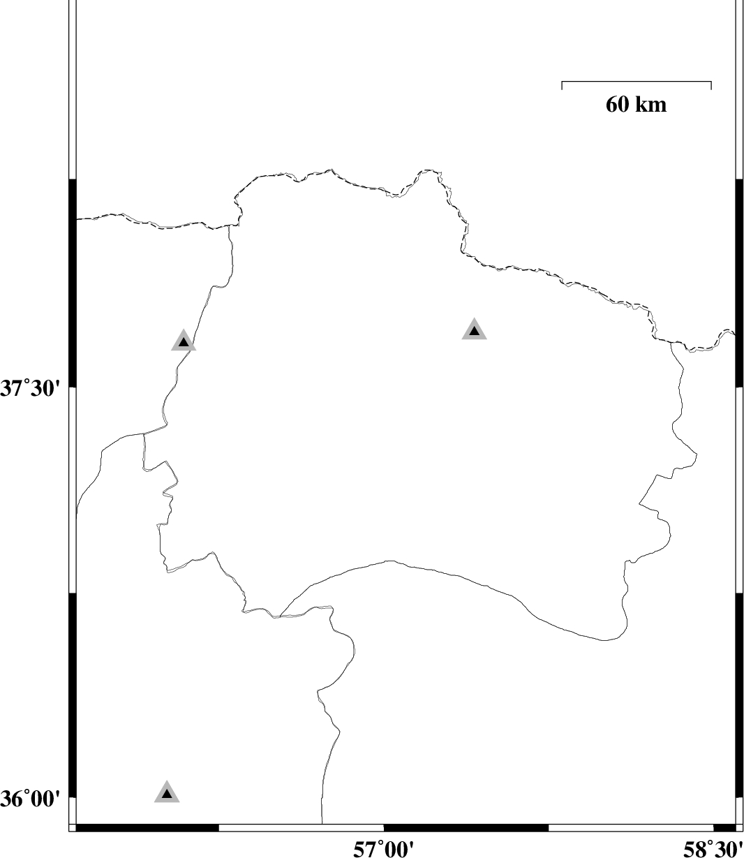 | 2012/03/10 | 15:54:28.6 | 19:24:28.6 | 37.4 | 57.1 | 15 | ML3.2 | Khorasan(north) Province, 22 km West of Bojnurd | ||