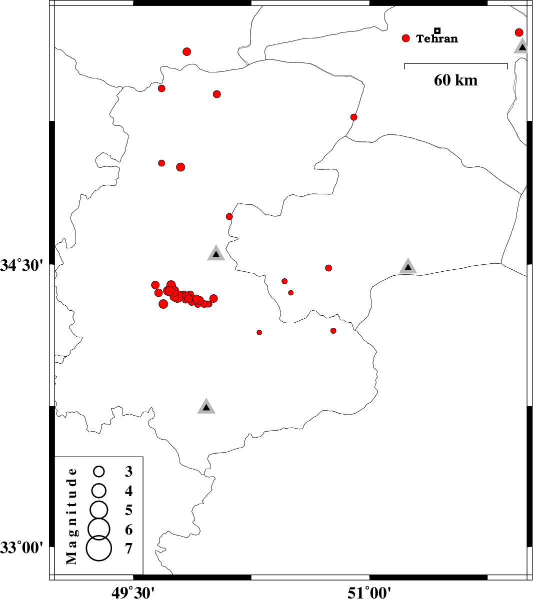 | 2012/02/20 | 17:40:07.4 | 21:10:07.4 | 34.29 | 49.98 | 6 | ML1.9 | Markazi Province, 27 km South of Ashtiyan | ||