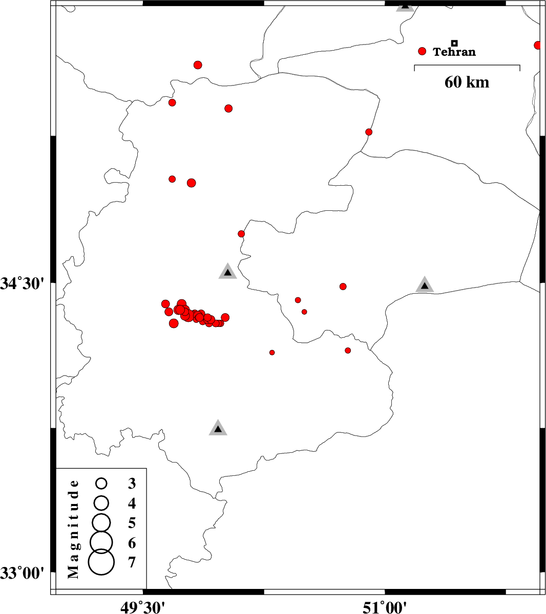 | 2012/02/20 | 17:40:07.4 | 21:10:07.4 | 34.29 | 49.98 | 6 | ML1.9 | Markazi Province, 27 km South of Ashtiyan | ||