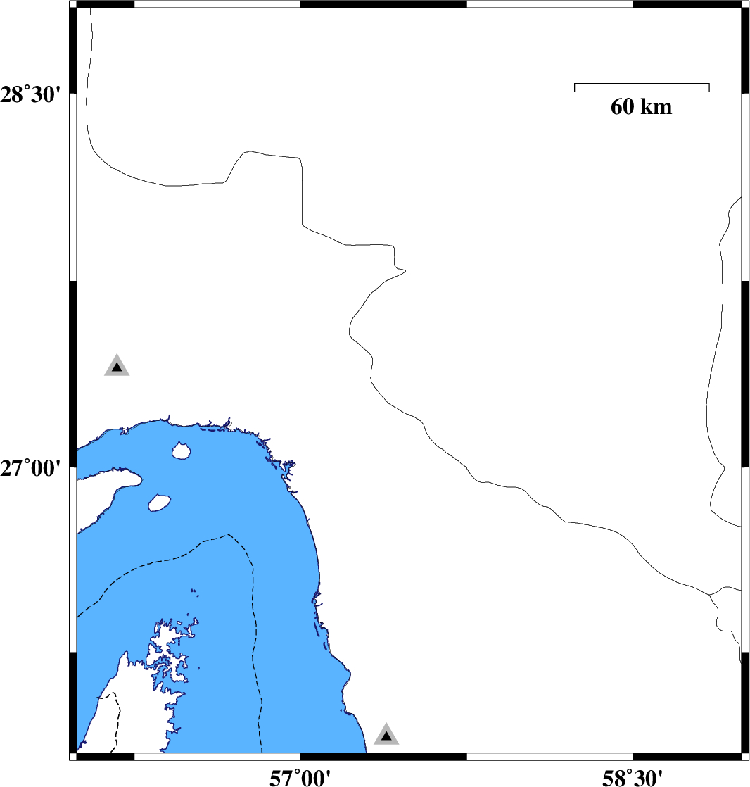 | 2012/03/05 | 19:30:15.2 | 23:00:15.2 | 27.88 | 56.89 | 14 | ML3.5 | Hormozgan Province, 61 km North-West of Dehbarez | ||