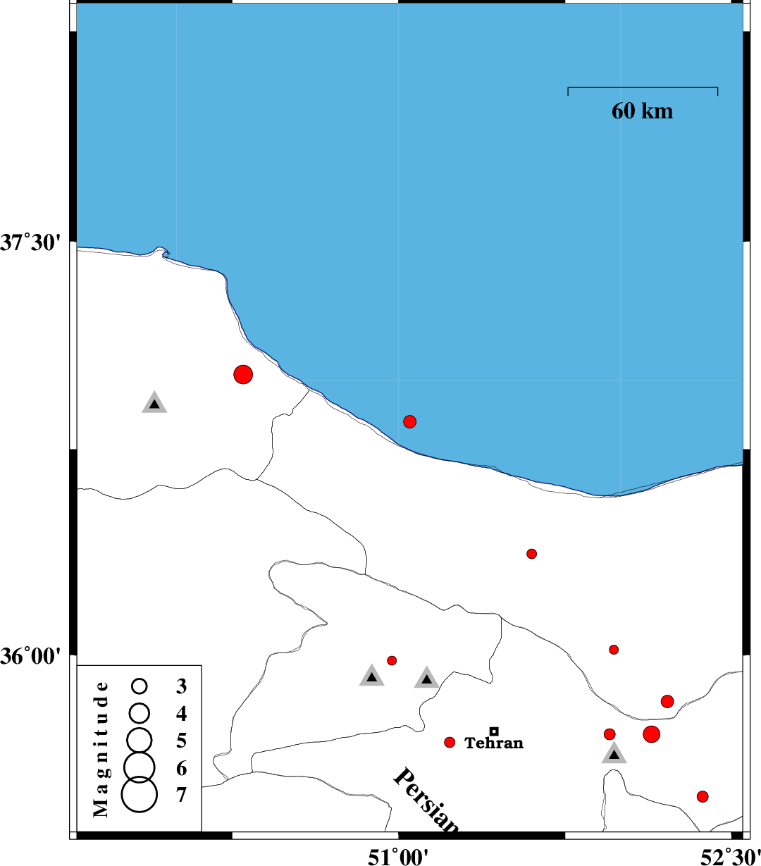 | 2012/02/17 | 07:08:17.4 | 10:38:17.4 | 36.37 | 51.6 | 14 | ML2 | Mazandaran Province, 32 km South of Nowshahr | ||