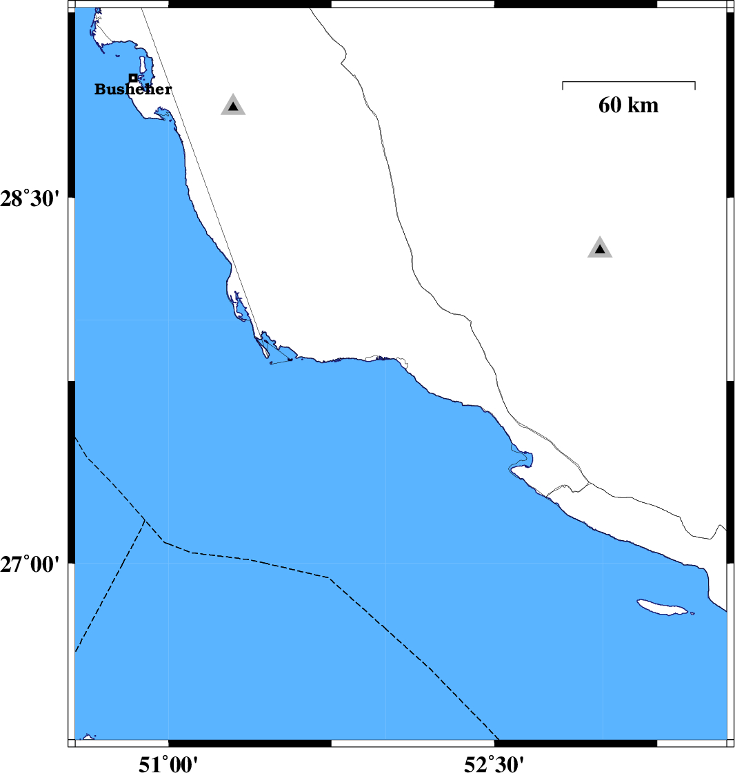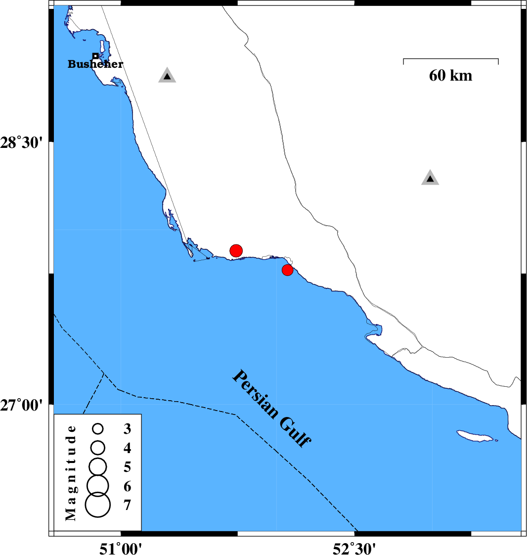 | 2012/03/13 | 00:30:26.1 | 04:00:26.1 | 27.88 | 51.74 | 29 | ML3.6 | Bushehr Province, 32 km West of Bandar-e kangan |