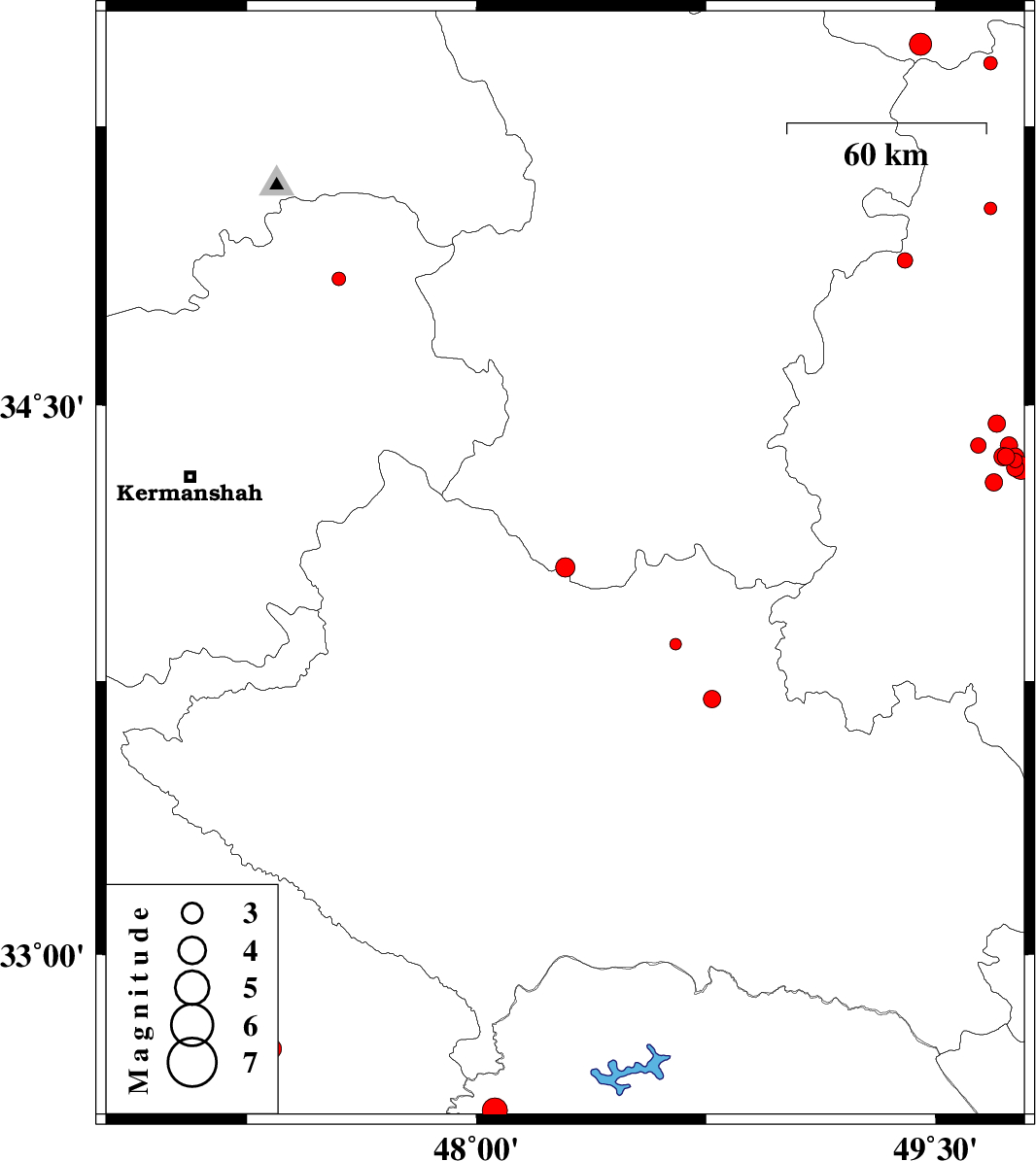 | 2012/02/29 | 06:33:44.9 | 10:03:44.9 | 32.74 | 47.33 | 14 | ML3 | Ilam Province, 8 km Dehloran | ||