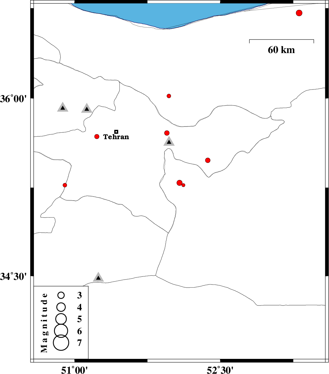 | 2012/03/10 | 19:43:50.7 | 23:13:50.7 | 35.71 | 51.95 | 9 | ML2.3 | Tehran Province, 11 km West of Damavand | ||