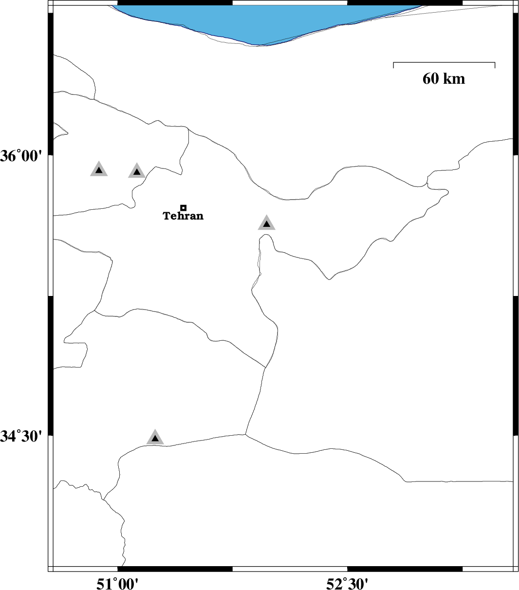 | 2012/03/28 | 05:35:19.6 | 10:05:19.6 | 35.29 | 52.08 | 18 | ML2.5 | Semnan Province, 24 km West of Garmsar |