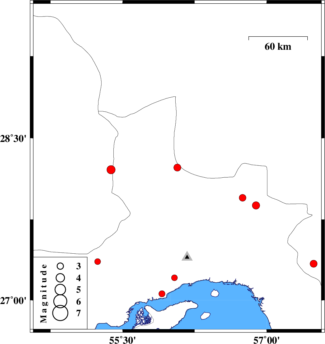 | 2012/03/12 | 05:09:52.6 | 08:39:52.6 | 26.99 | 54.83 | 15 | ML4.2 | Hormozgan Province, 52 km North of Bandar-e lengeh | ||